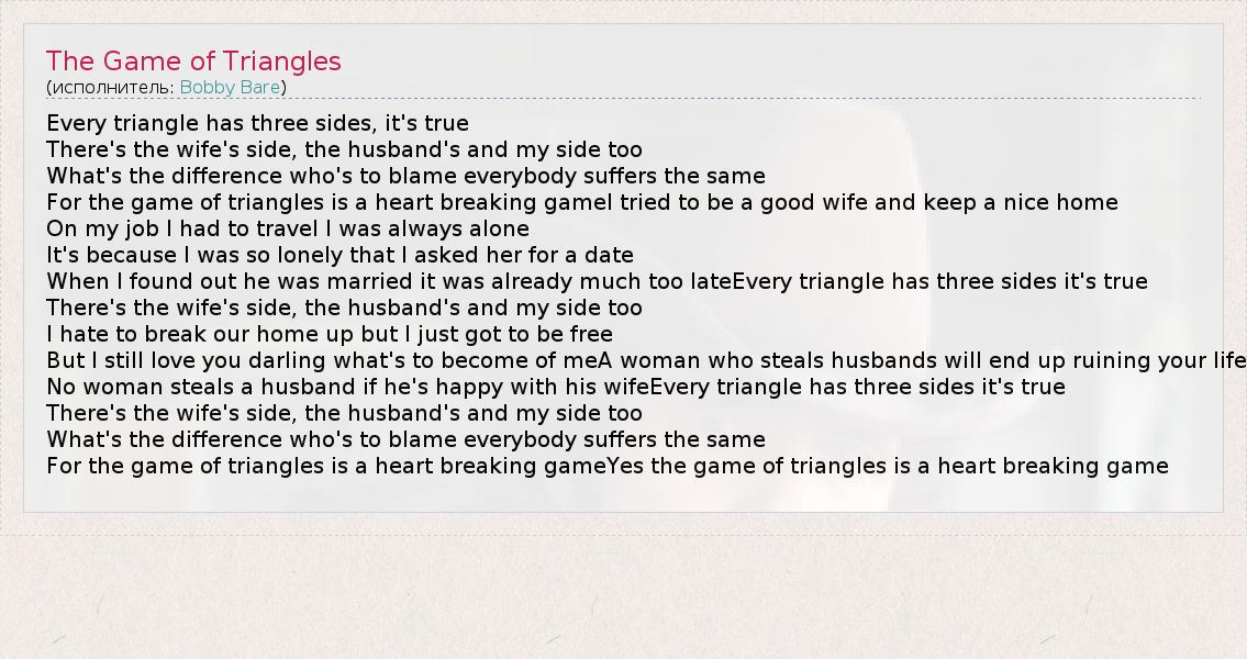 А как ты думаешь, о чем песня "The Game of Triangles" ?