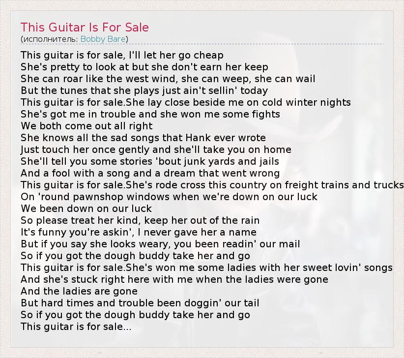 ГлавнаяИсполнителиBobby BareThis Guitar Is For Sale