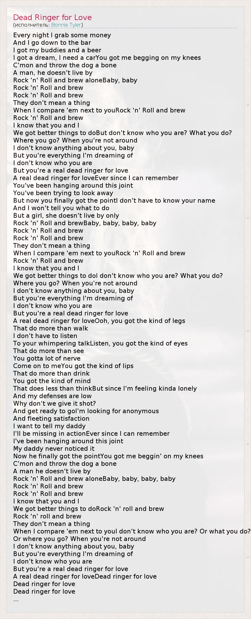 А как ты думаешь, о чем песня "Dead Ringer for Love" ?