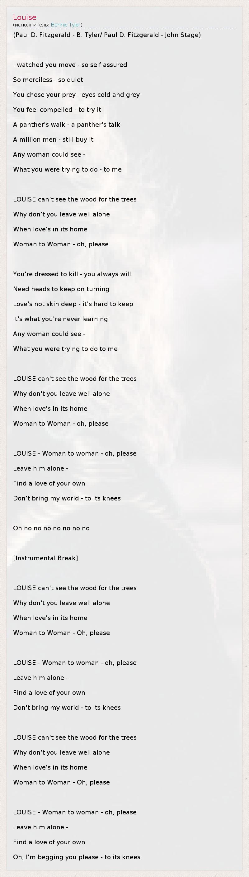 Это интересно:Бонни Тайлер (Bonnie Tyler, настоящее имя Гейнор Хопкинс, Gaynor Hopkins - родилась 8 июня 1951 в Скивен, Южный Уэльс) - английская рок-певица, троекратная номинантка премии Грэмми, а также Академии Кантри-музыки. Мировую известность Тайлер получила в 70-80-х годах благодаря международным хитам "It's A Heartache", "Holding Out For A Hero" и "Total Eclipse Of The Heart"."Total Eclipse Of The Heart" стала самой узнаваемой песней... продолжение