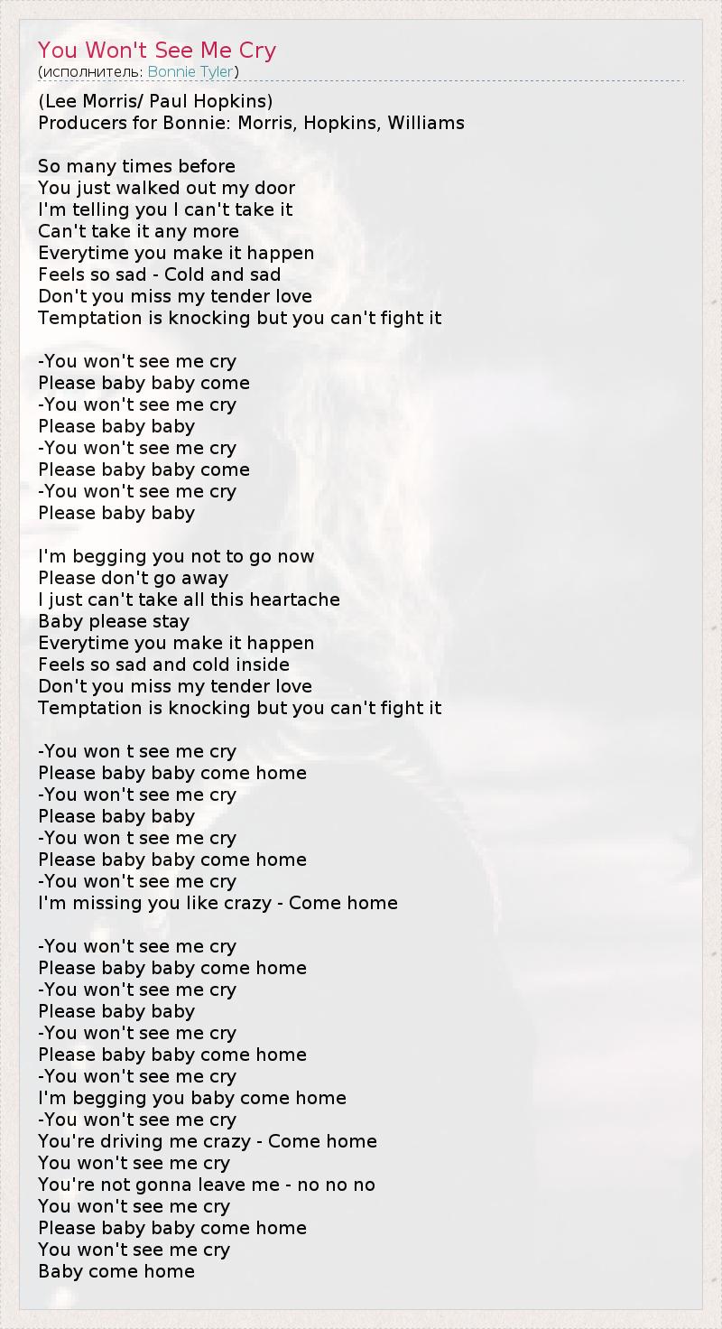 You won't see me cry