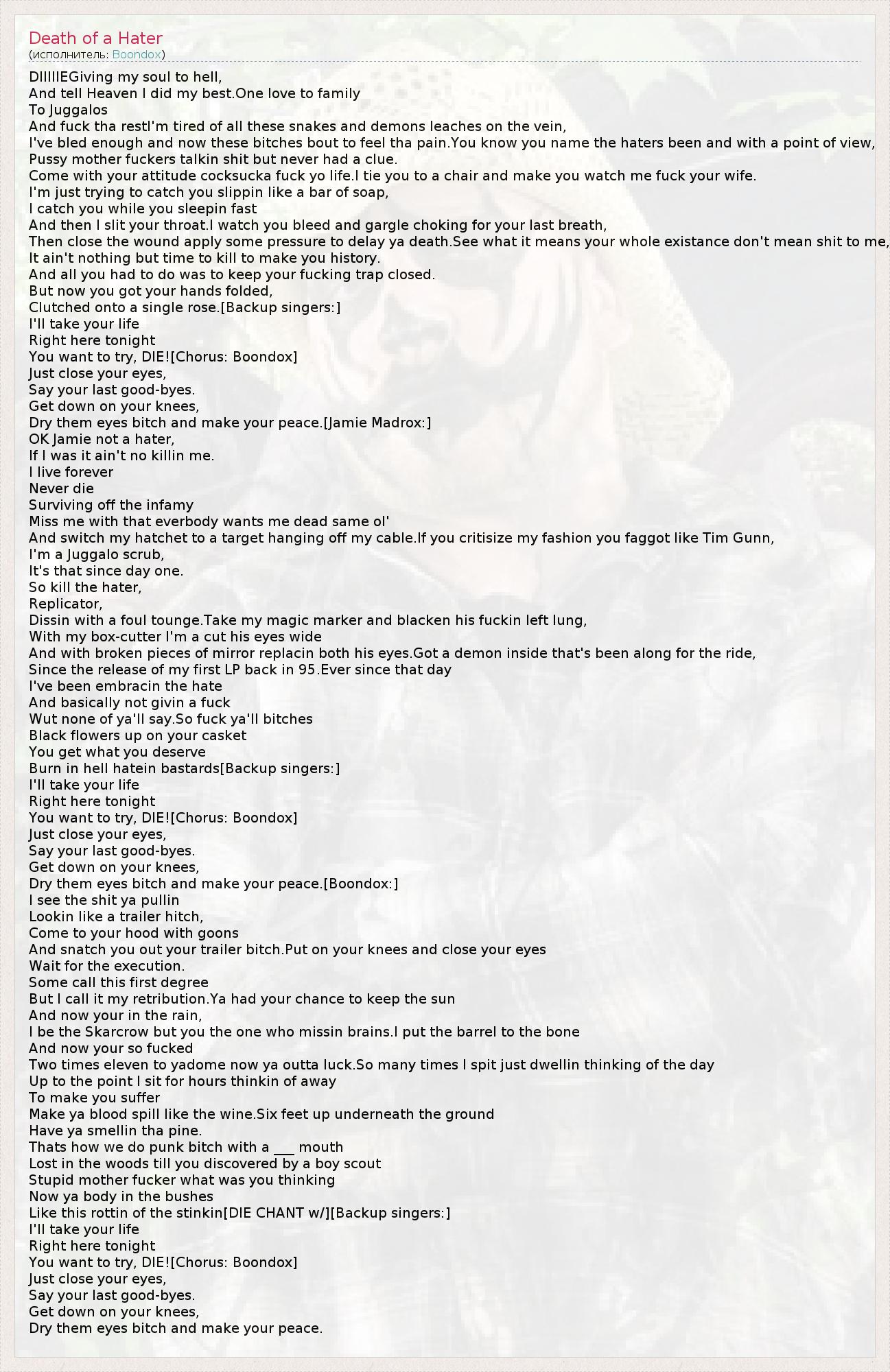 А как ты думаешь, о чем песня "Death of a Hater" ?