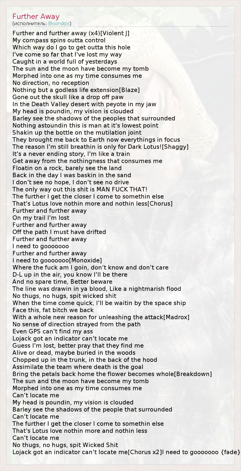 The reason I'm still breathin is only for Dark Lotus![Shaggy]