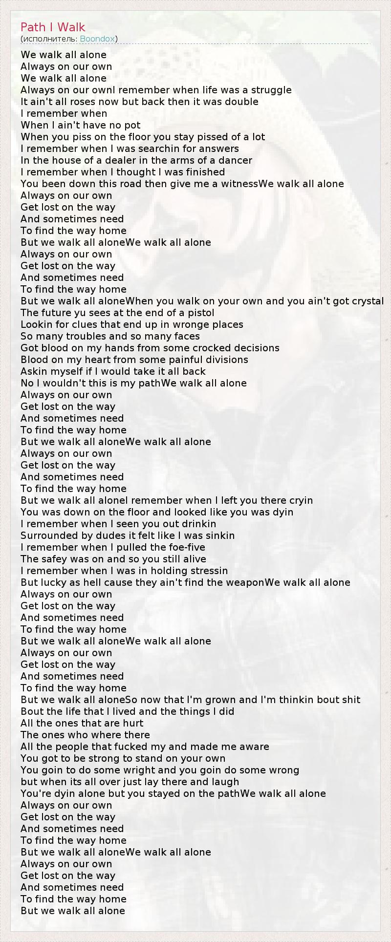 You're dyin alone but you stayed on the pathWe walk all alone