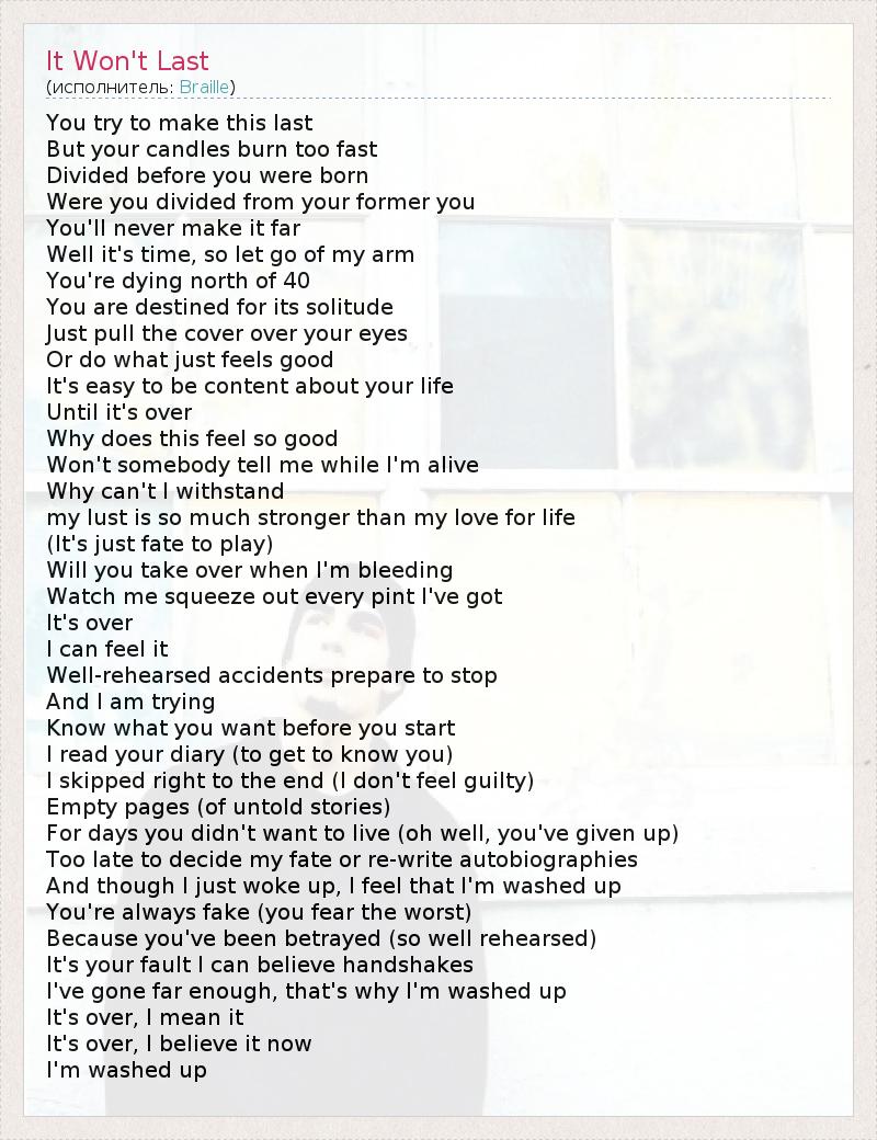 А как ты думаешь, о чем песня "It Won't Last" ?