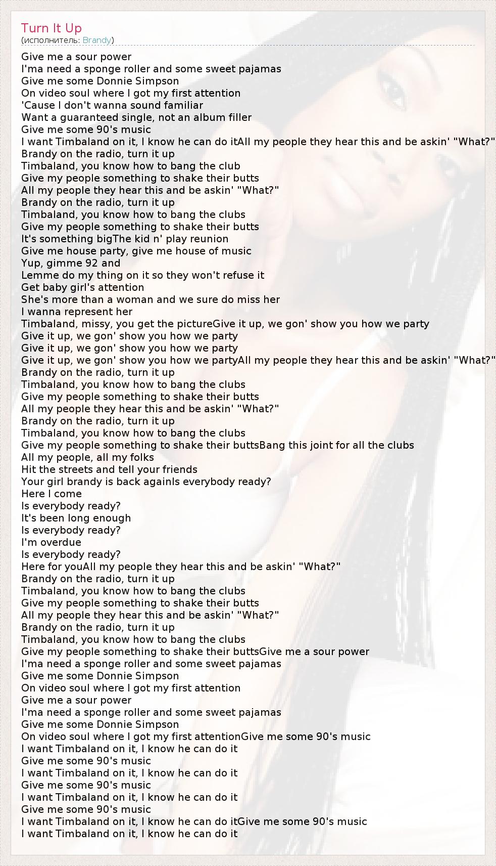 А как ты думаешь, о чем песня "Turn It Up" ?