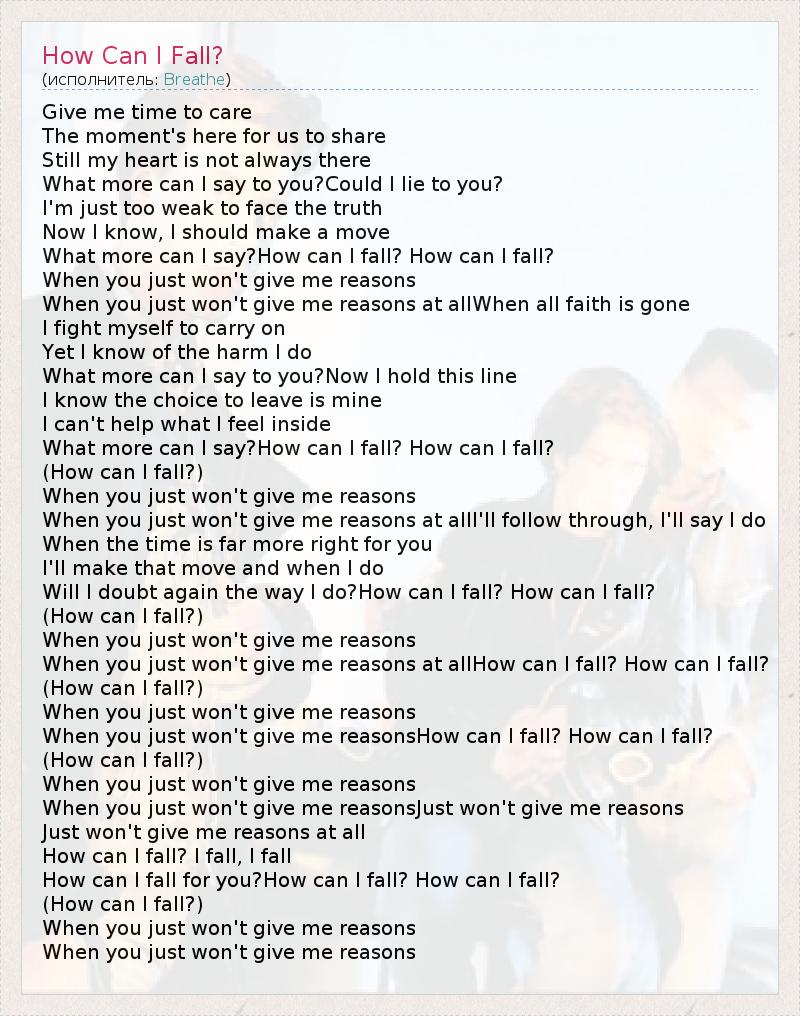 When you just won't give me reasons at allHow can I fall? How can I fall?