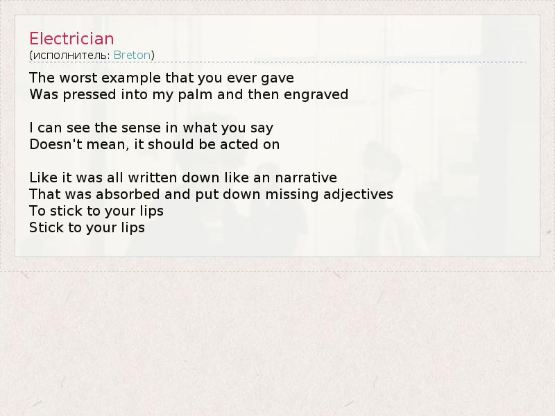 Это интересно:Бретон позиционируют себя не как группа, а как коллективное мультимедийное искусство. Как признаются пятеро друзей из Южного Лондона, они начали музицировать вместе только потому, что нуждались в музыкальном оформлении для своих арт-проектов: приоритетным для их ТО (Breton LABS) являлось производство фильмов и визуальных инсталляций.Работа над «саундтреками» вскоре вылилась в отдельное... продолжение