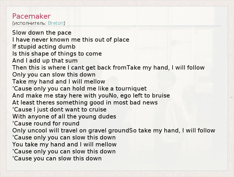 А как ты думаешь, о чем песня "Pacemaker" ?