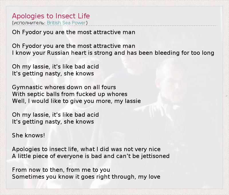 А как ты думаешь, о чем песня "Apologies to Insect Life" ?