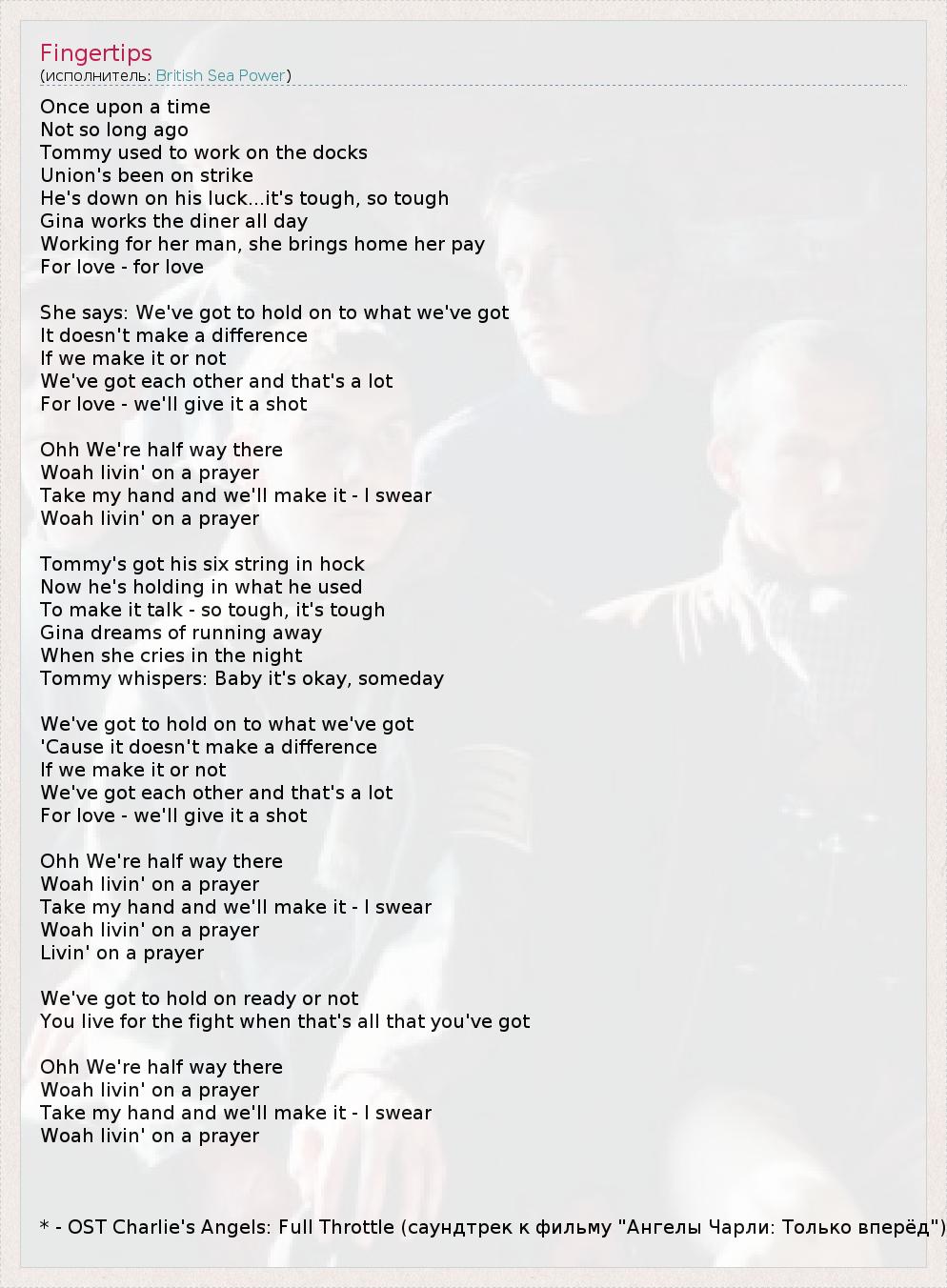 Woah livin' on a prayer