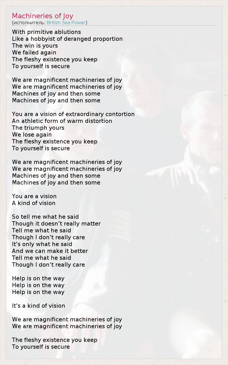 А как ты думаешь, о чем песня "Machineries of Joy" ?