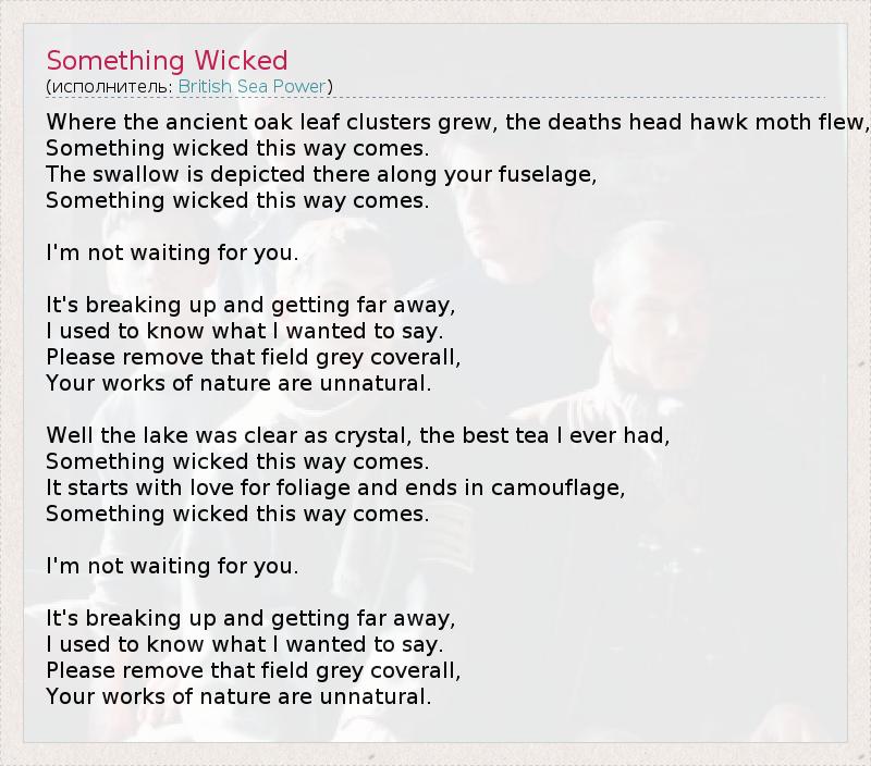А как ты думаешь, о чем песня "Something Wicked" ?