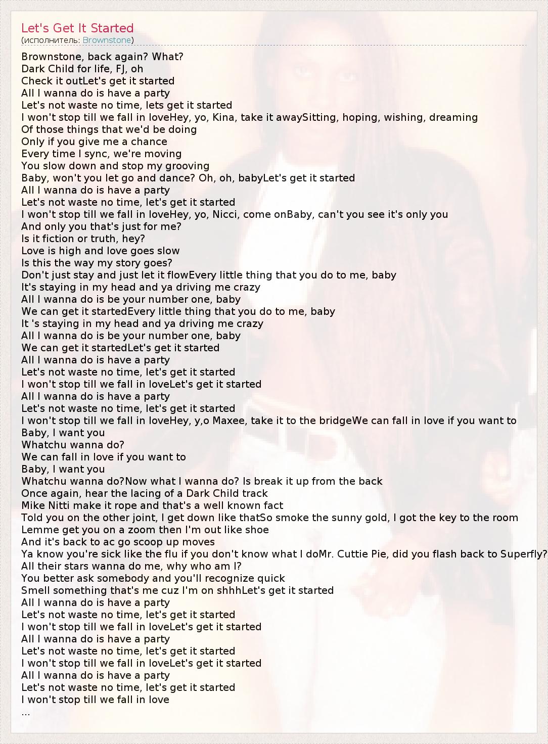 А как ты думаешь, о чем песня "Let's Get It Started" ?
