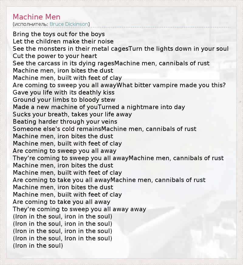 They're coming to sweep you all awayMachine men, cannibals of rust
