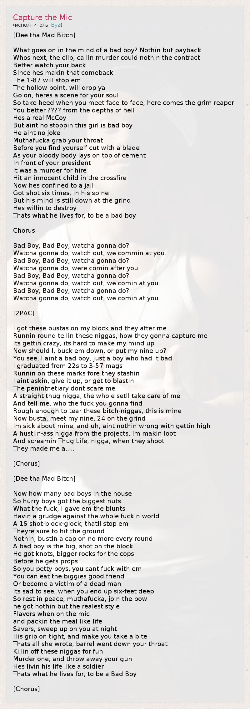 А как ты думаешь, о чем песня "Capture the Mic" ?
