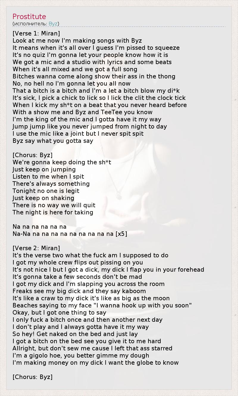 А как ты думаешь, о чем песня "Prostitute" ?
