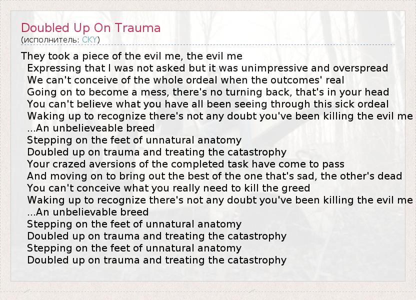 А как ты думаешь, о чем песня "Doubled Up On Trauma" ?