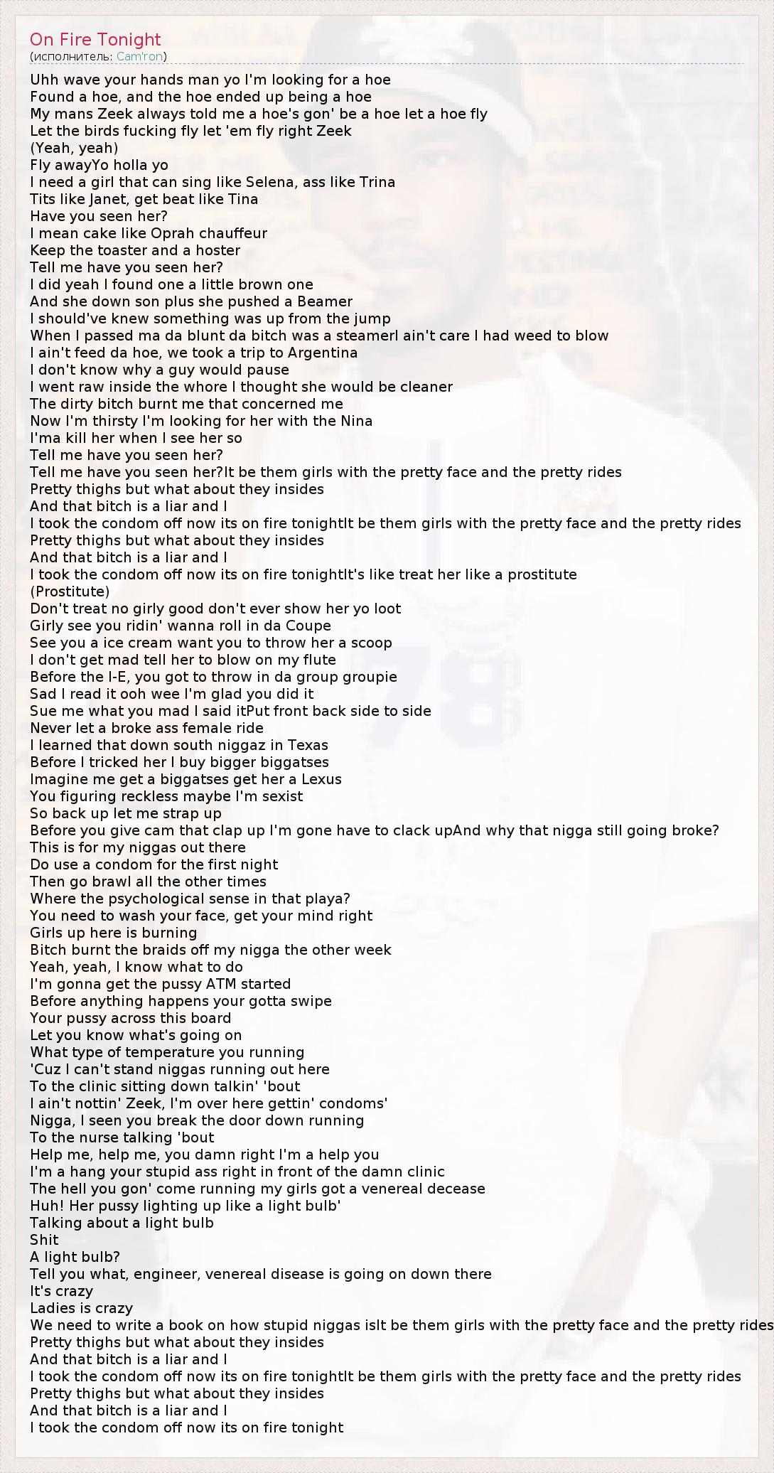 I took the condom off now its on fire tonightIt's like treat her like a prostitute