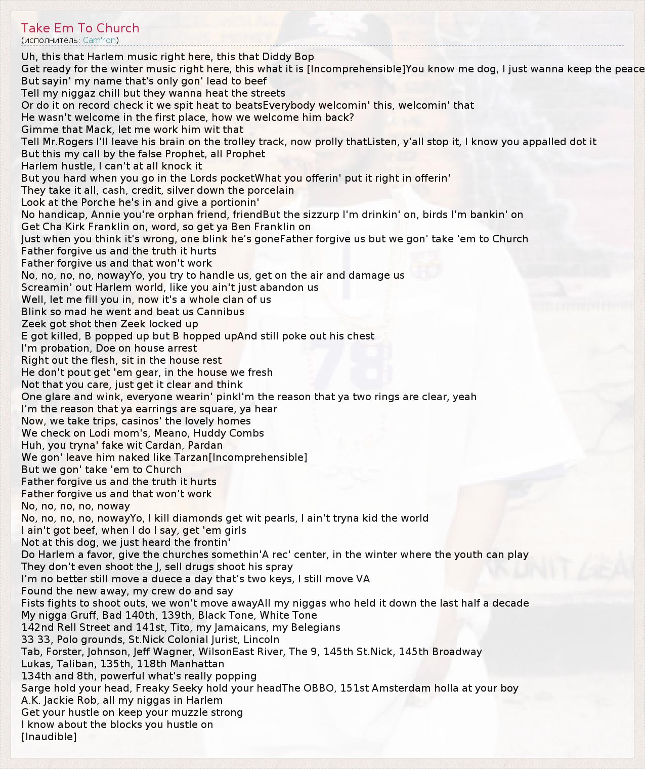 А как ты думаешь, о чем песня "Take Em To Church" ?
