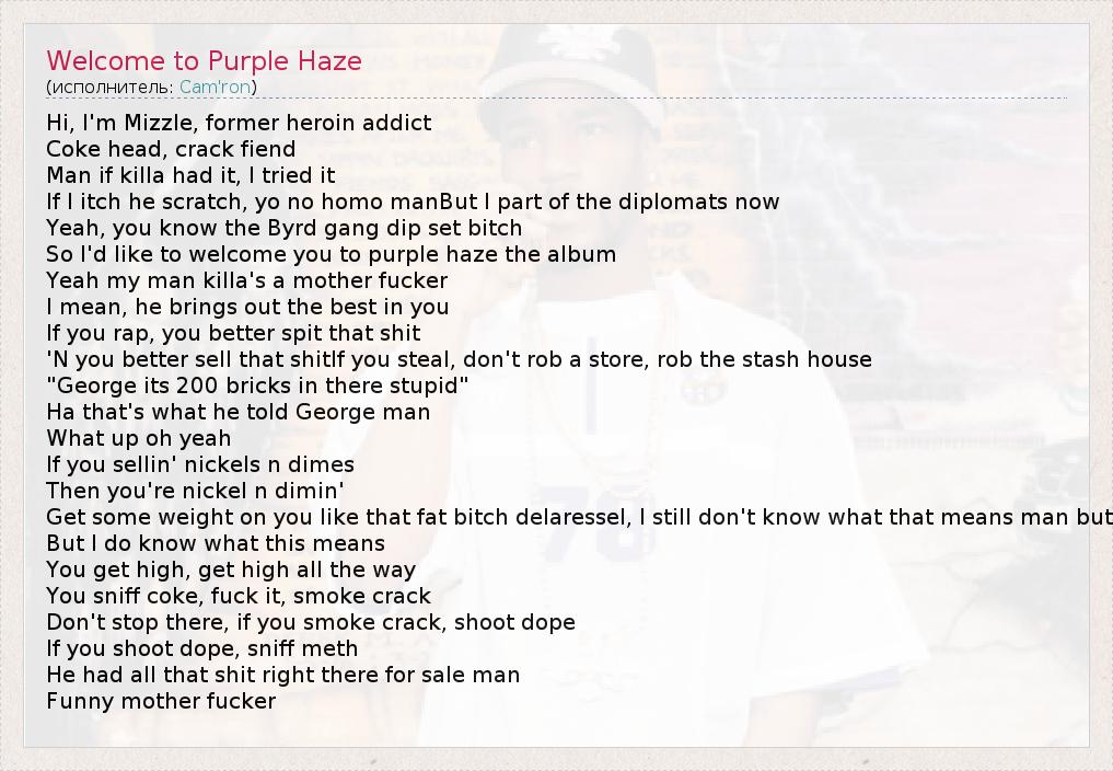 А как ты думаешь, о чем песня "Welcome to Purple Haze" ?