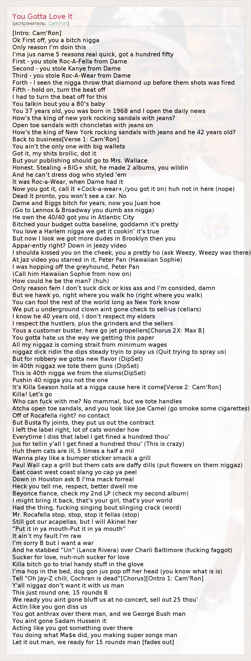 А как ты думаешь, о чем песня "You Gotta Love It" ?