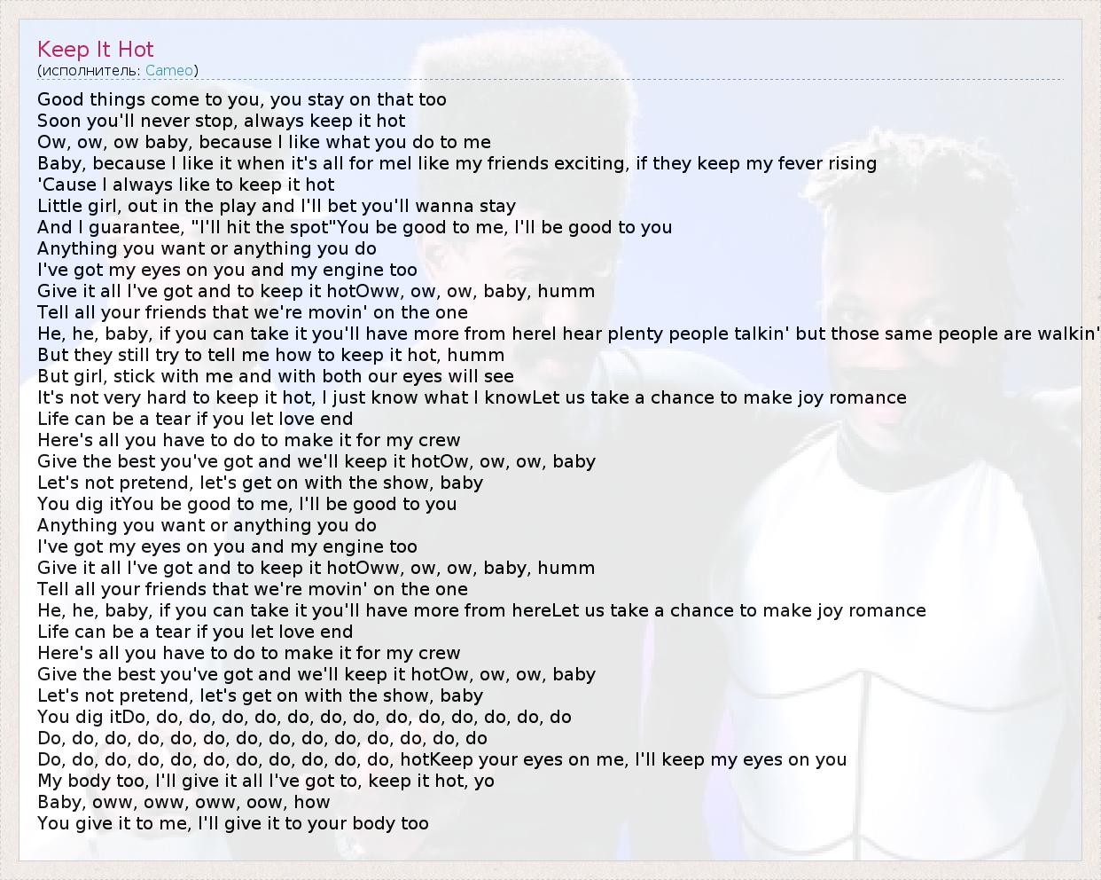 А как ты думаешь, о чем песня "Keep It Hot" ?