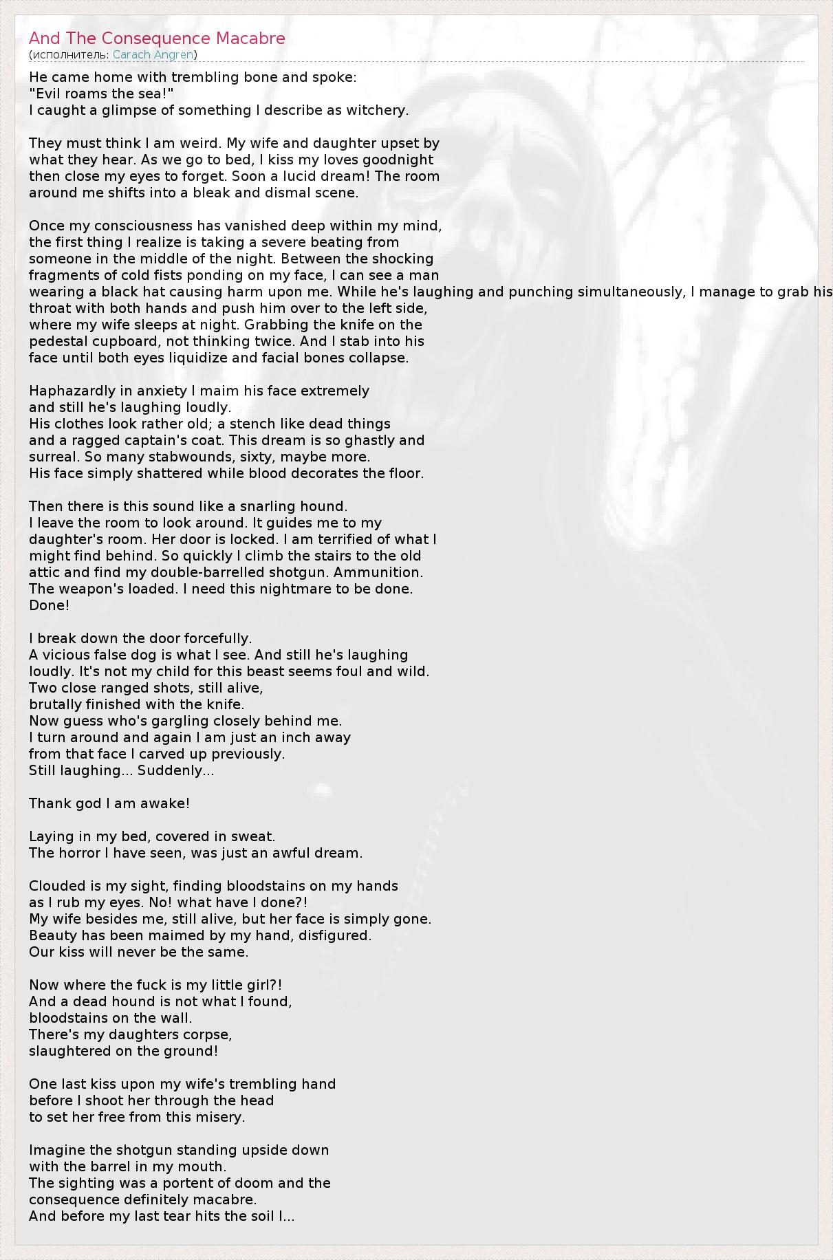А как ты думаешь, о чем песня "And The Consequence Macabre" ?