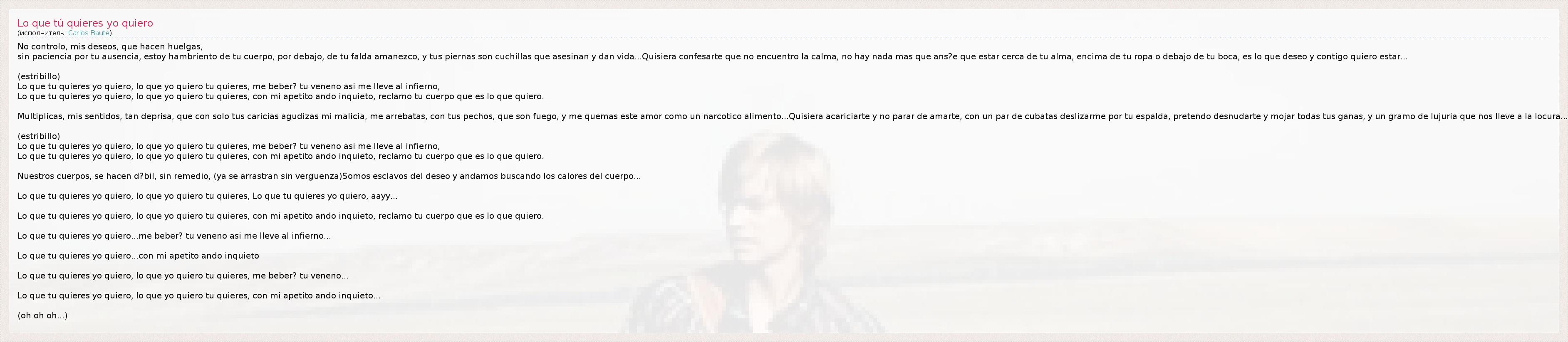 ГлавнаяИсполнителиCarlos BauteLo que tú quieres yo quiero