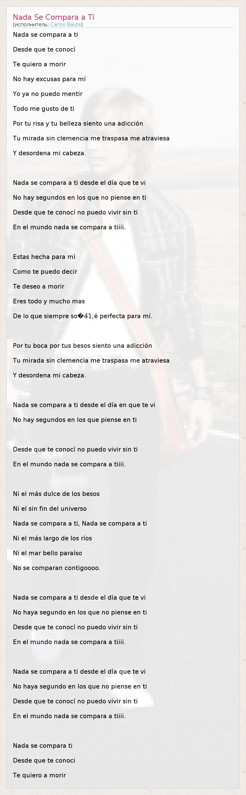 А как ты думаешь, о чем песня "Nada Se Compara a Ti" ?