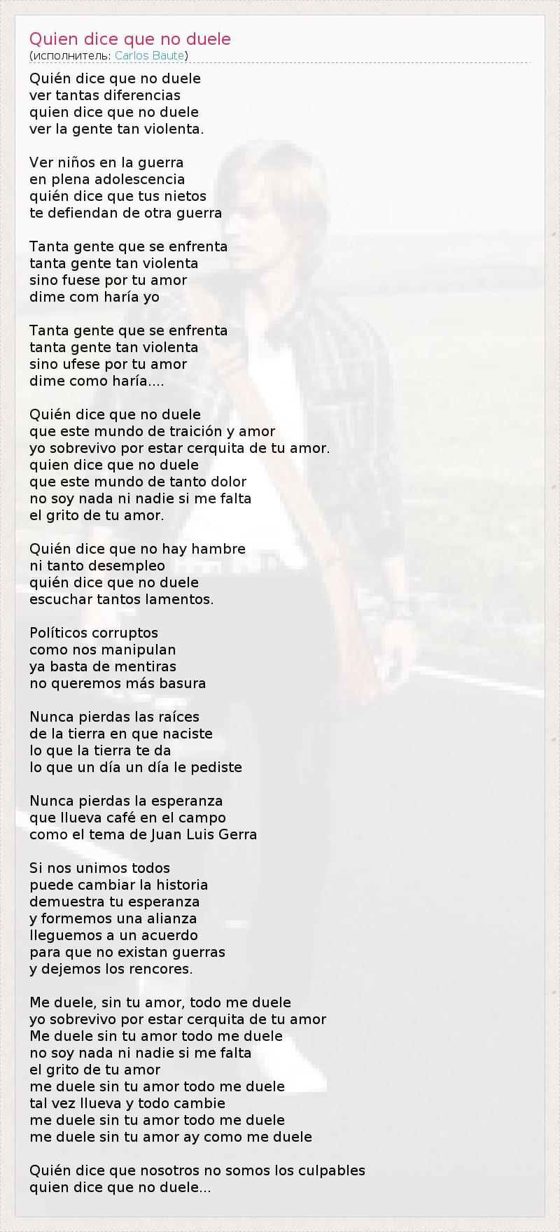 ГлавнаяИсполнителиCarlos BauteQuien dice que no duele