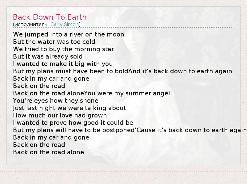 А как ты думаешь, о чем песня "Back Down To Earth" ?