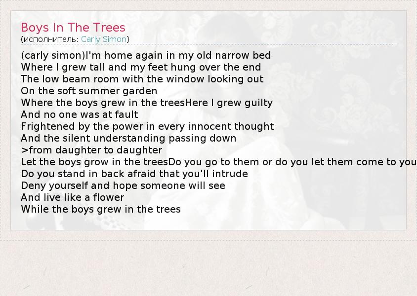 А как ты думаешь, о чем песня "Boys In The Trees" ?