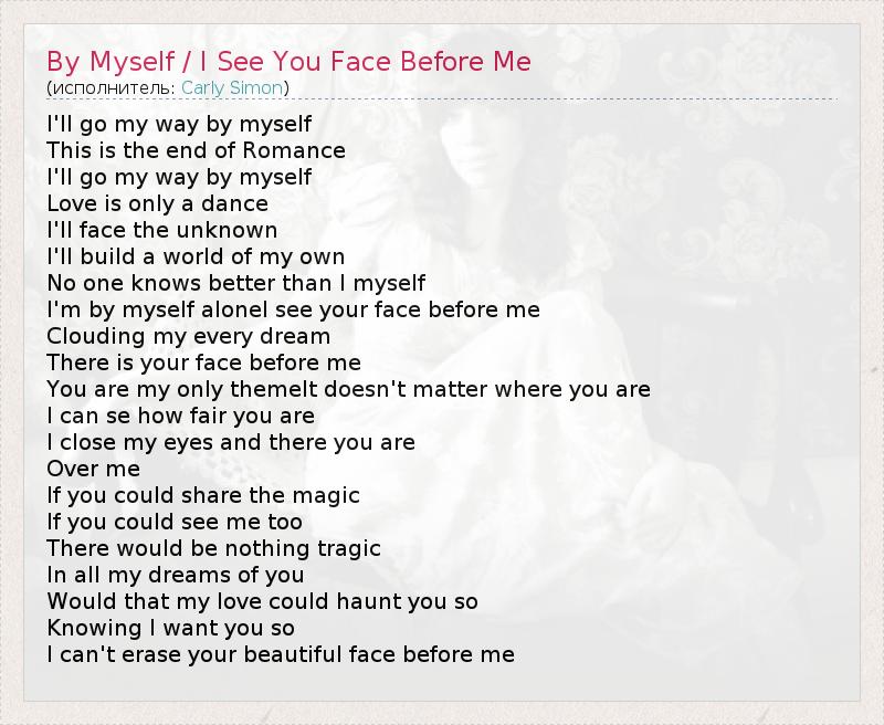 А как ты думаешь, о чем песня "By Myself / I See You Face Before Me" ?