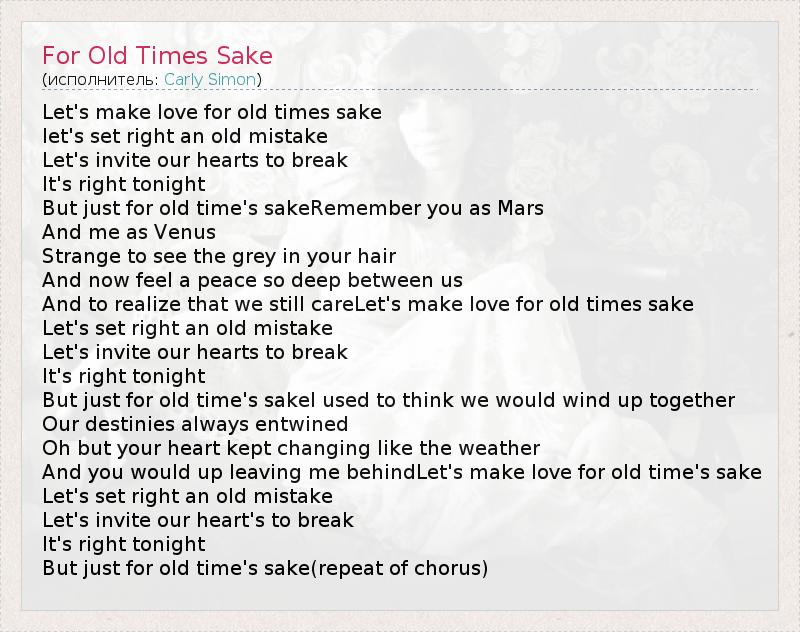 А как ты думаешь, о чем песня "For Old Times Sake" ?