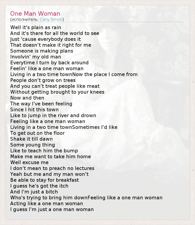А как ты думаешь, о чем песня "One Man Woman" ?