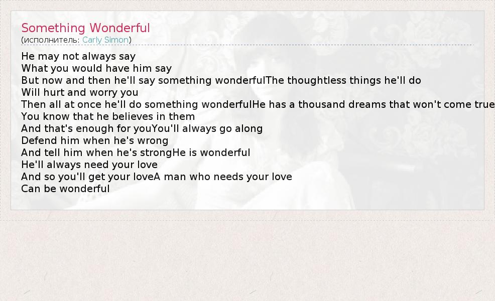 А как ты думаешь, о чем песня "Something Wonderful" ?