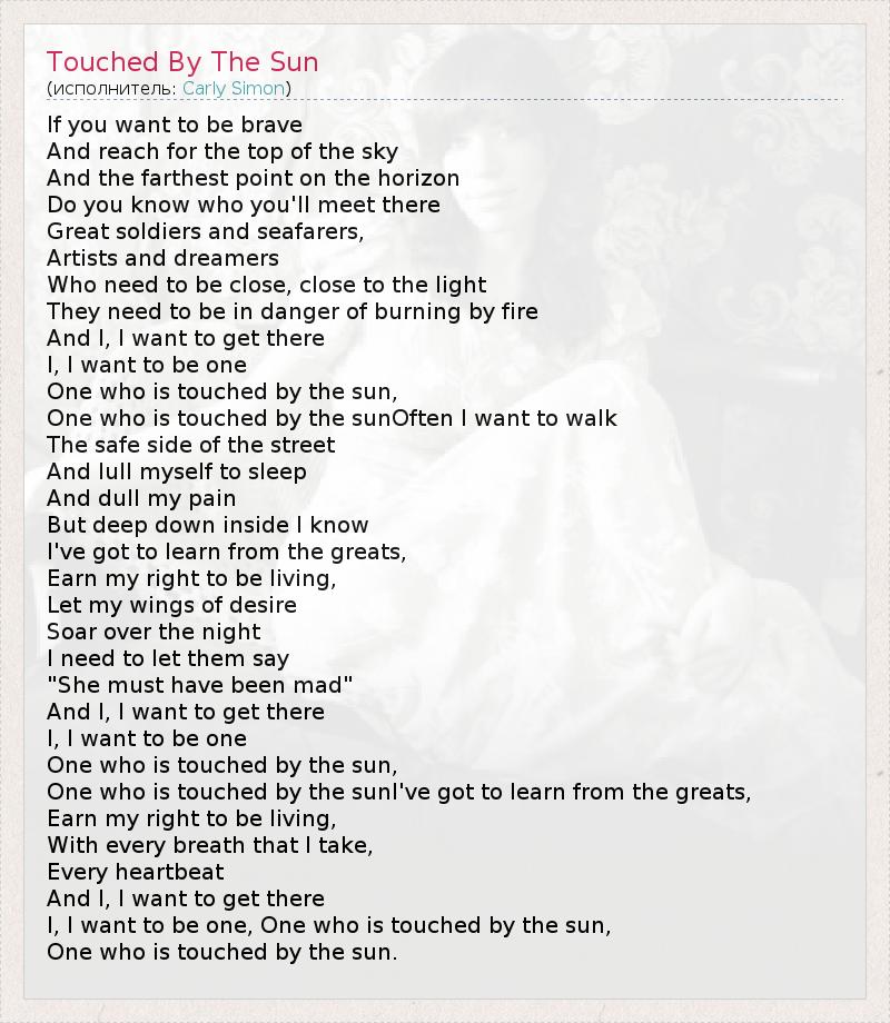А как ты думаешь, о чем песня "Touched By The Sun" ?