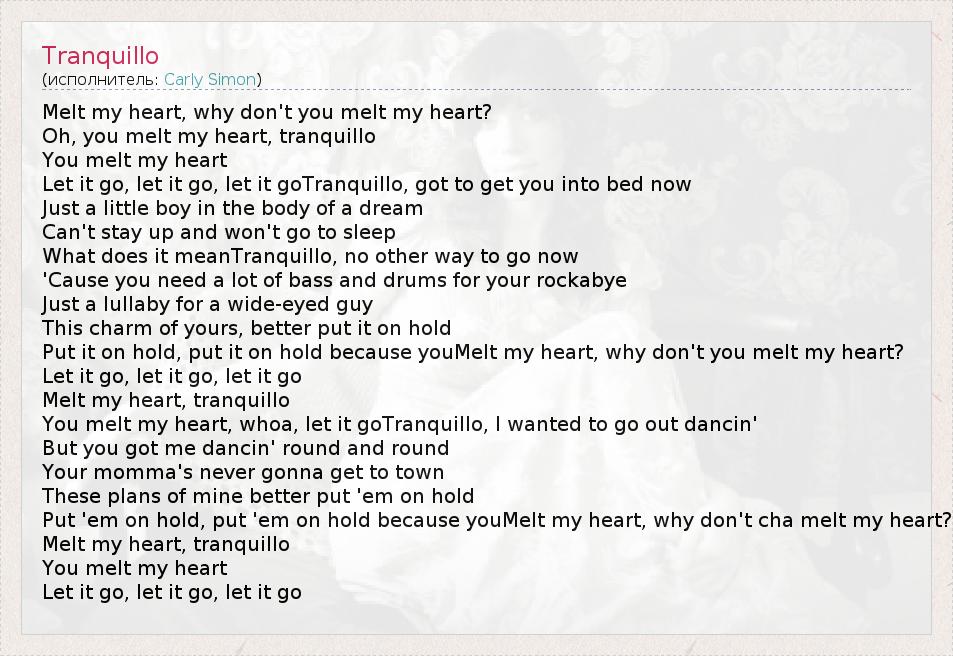 Melt my heart, tranquillo
