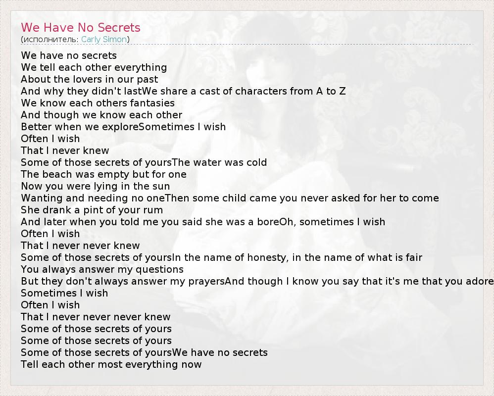А как ты думаешь, о чем песня "We Have No Secrets" ?