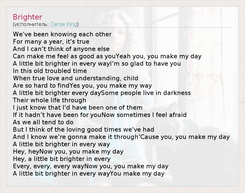 A little bit brighter in every wayYou make my day