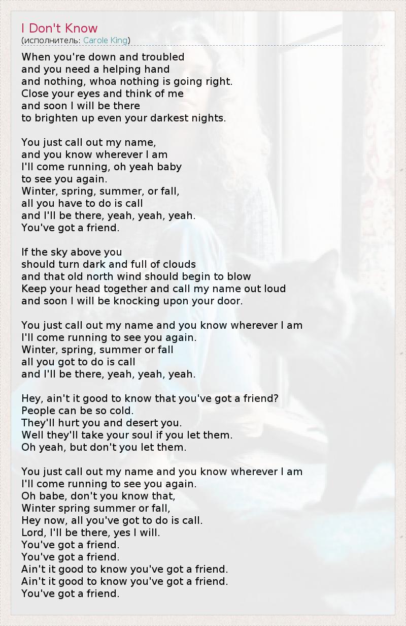 Ain't it good to know you've got a friend.