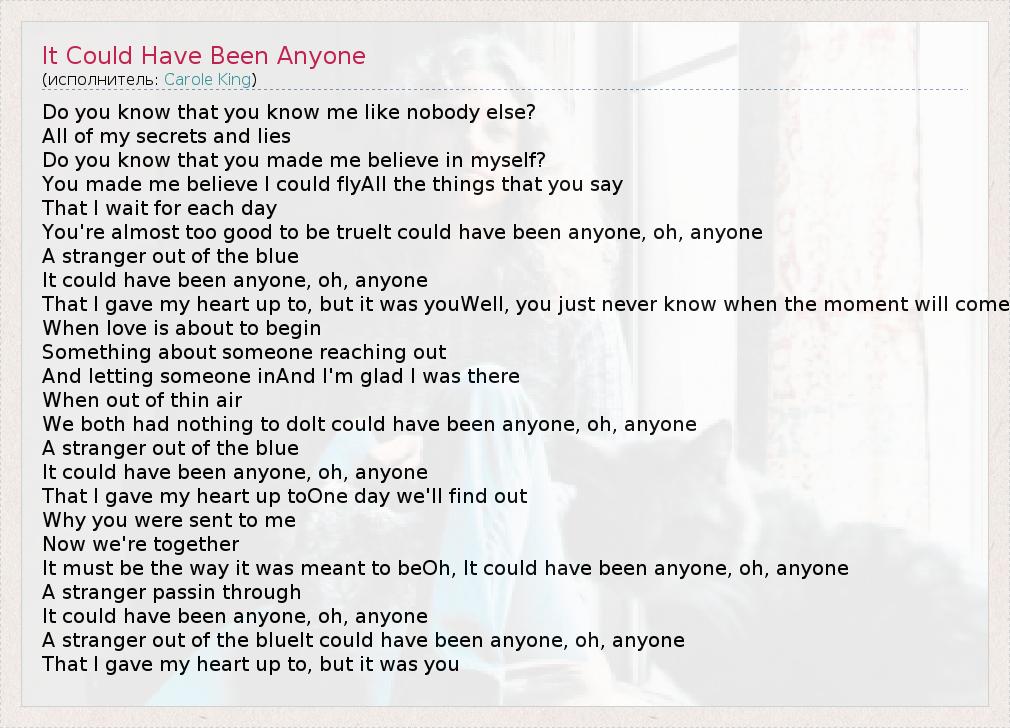 А как ты думаешь, о чем песня "It Could Have Been Anyone" ?