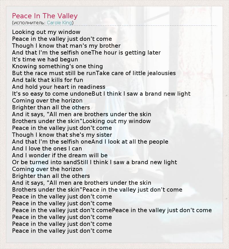 А как ты думаешь, о чем песня "Peace In The Valley" ?
