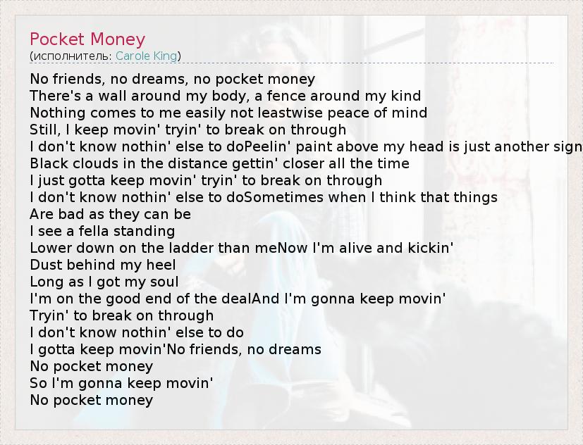 А как ты думаешь, о чем песня "Pocket Money" ?