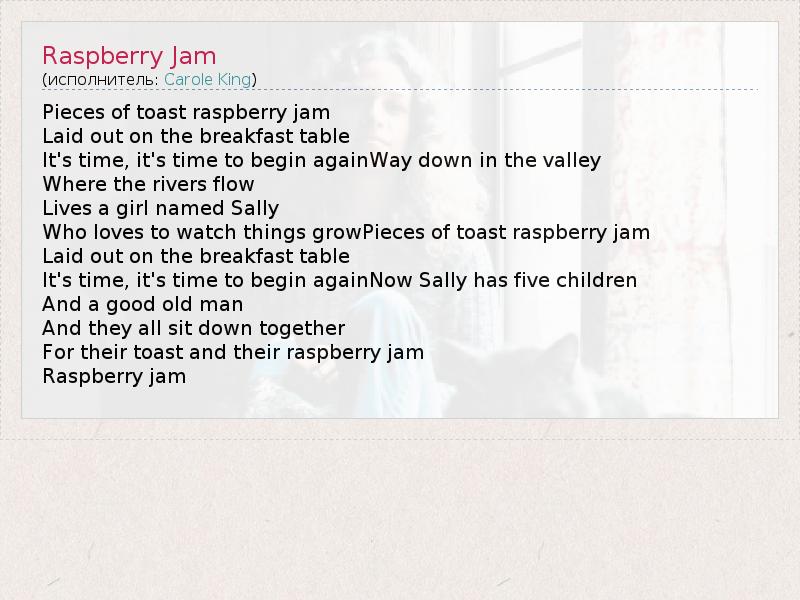 А как ты думаешь, о чем песня "Raspberry Jam" ?