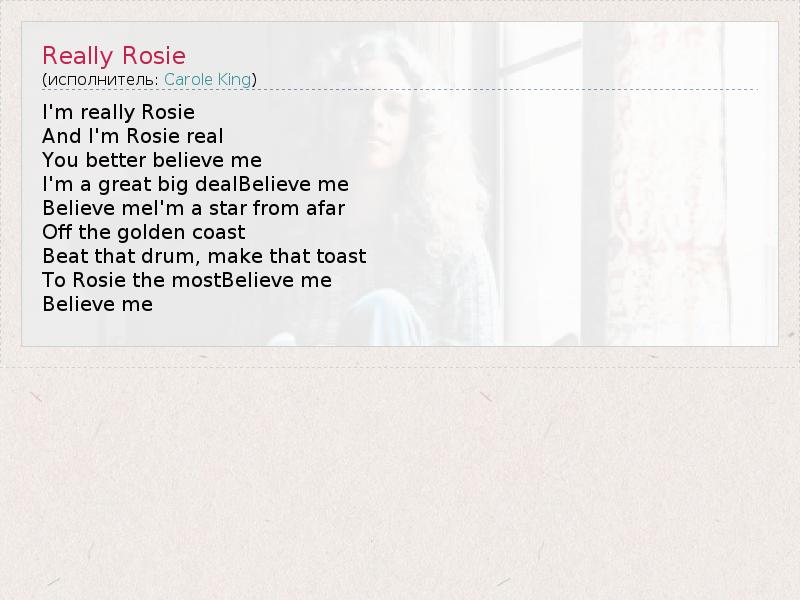 А как ты думаешь, о чем песня "Really Rosie" ?