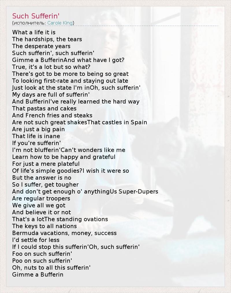 А как ты думаешь, о чем песня "Such Sufferin'" ?