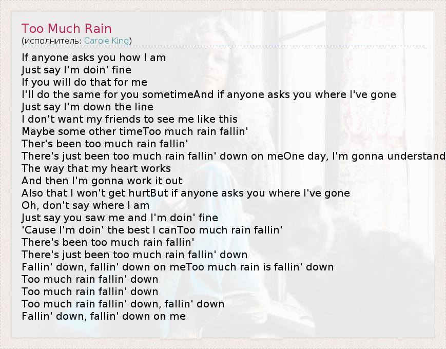 А как ты думаешь, о чем песня "Too Much Rain" ?
