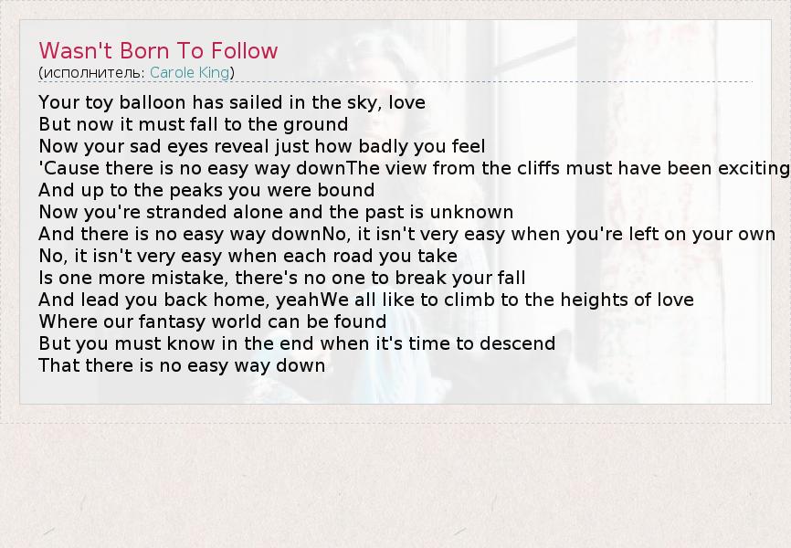 А как ты думаешь, о чем песня "Wasn't Born To Follow" ?